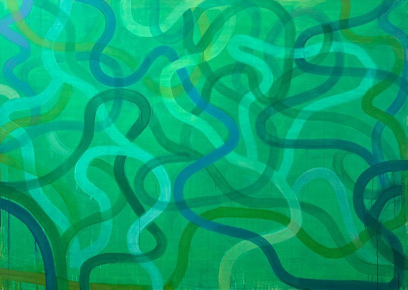 Robinwood #38, 2025, 90 in by 180 in, acrylic on canvas